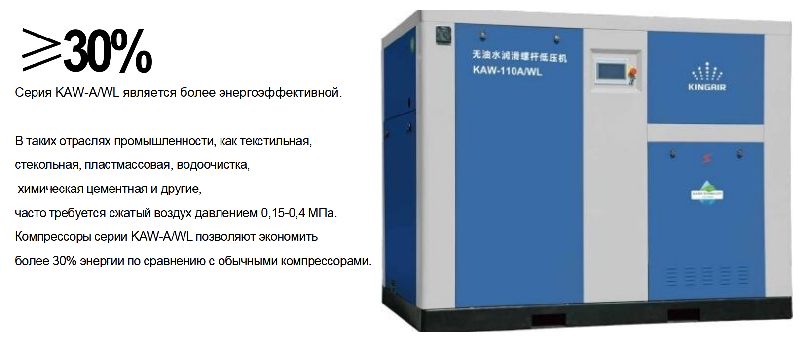 Одноступенчатый винтовой воздушный компрессор низкого давления с частотно-регулируемым приводом