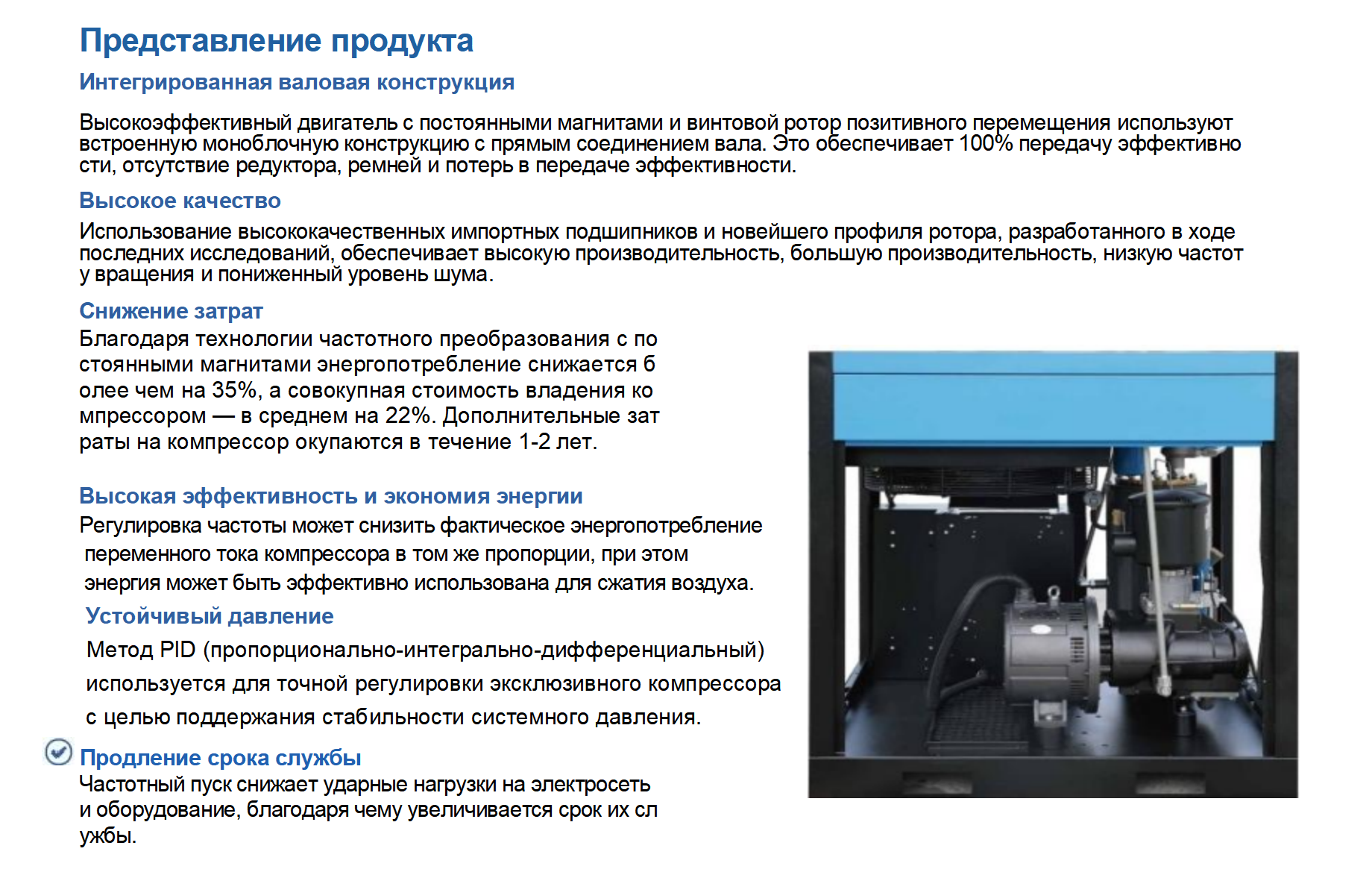 Одноступенчатый винтовой воздушный компрессор с частотным преобразователем постоянного тока