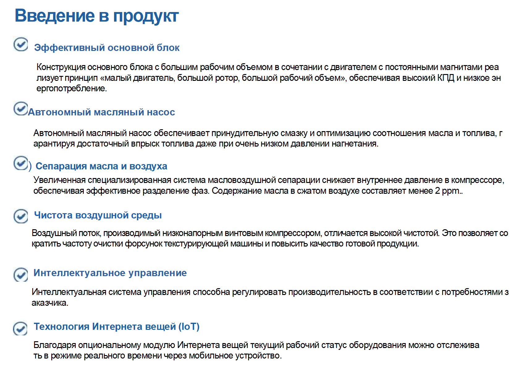 Одноступенчатый винтовой воздушный компрессор с частотным преобразователем постоянного тока